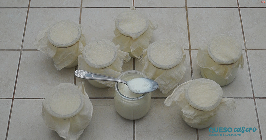 HORNO; Encendemos el horno al mínimo 40-45º, cuando alcanza esta temperatura lo apagamos e introducimos los vasitos con la leche. Tapa los vasos con un paño o una tapa que no sea hermética. Debe de estar entre 14-20 horas, ve comprobando de vez en cuando 2-3 horas si se mantiene la temperatura en la leche, unos 29º. De bajarse la temperatura enciende de nuevo un poco el horno al mínimo para recuperar temperatura. El horno cerrado mantiene bastante bien la temperatura tendrás que encenderlo una o dos veces.